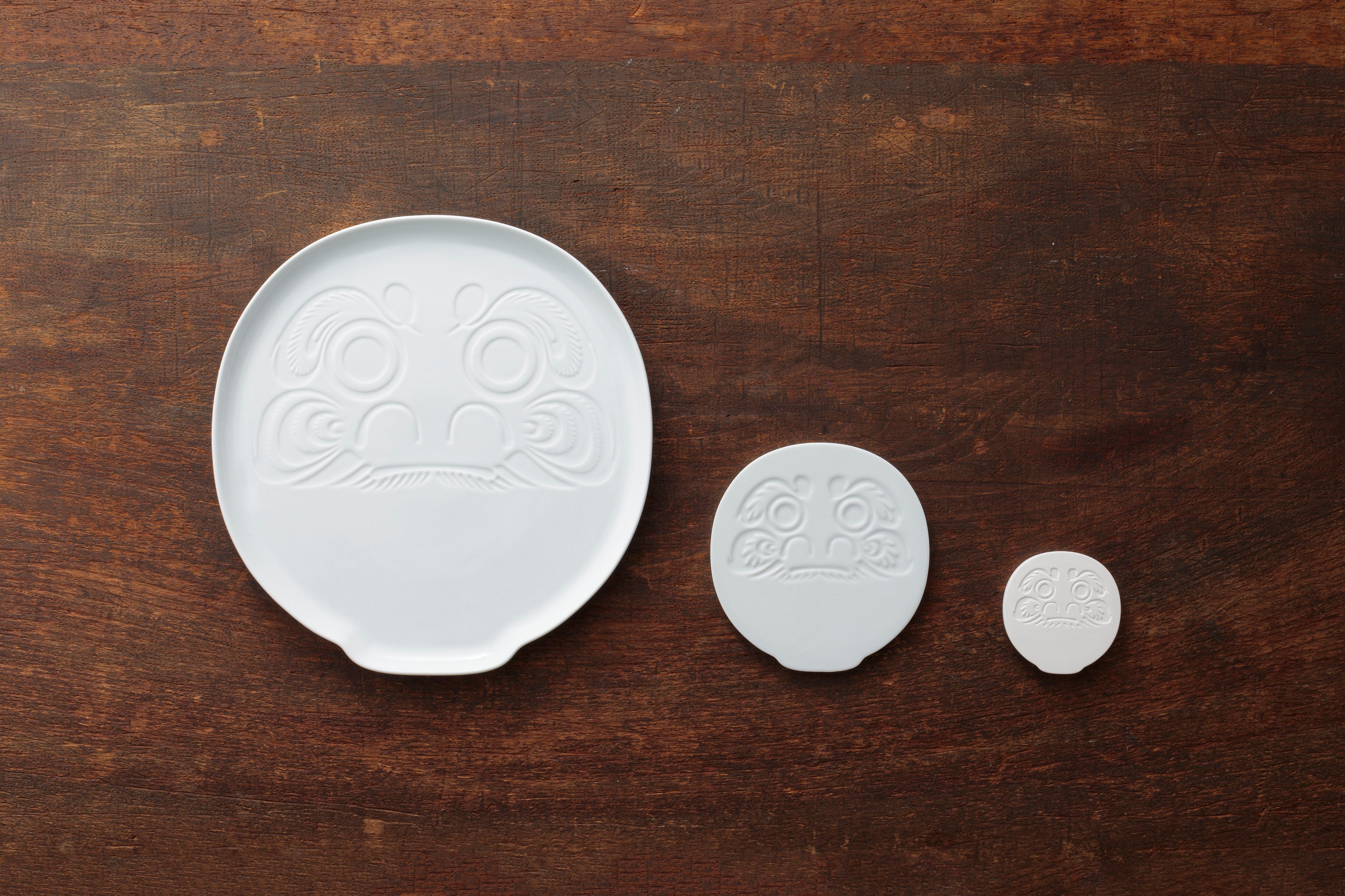 Daruma dolls are gaining recognition as a symbol of Japan. Takasaki City in Gunma Prefecture is said to be the largest producer of daruma in Japan, and a town of good luck. We took inspiration from the traditional Takasaki daruma manufacturing method, which uses a mold to form the doll bodies. Using our own plaster mold to imprint a dynamic face into porcelain, we created a flat daruma. This flat daruma is made with the same high quality as our other tableware, so you can use it to serve your favorite Gunma delicacies or as a decoration - the possibilities are endless. We hope you will use it in your own personal way and gain a new appreciation for the tableware you use in your daily life. It would make a great gift, or you can give it to someone as a souvenir - from Takasaki, from Gunma, from Japan!