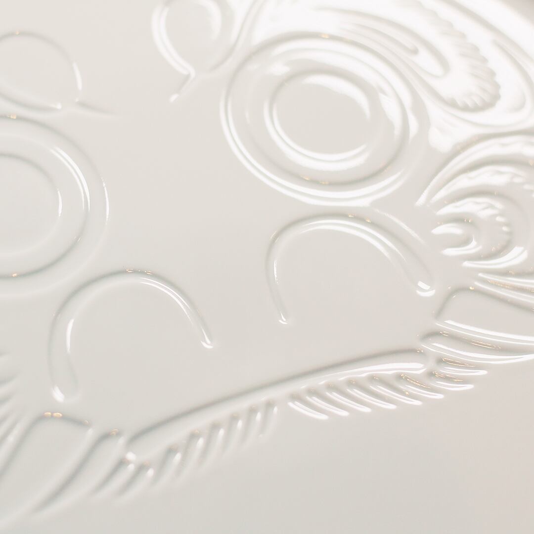 白のアップ写真(型を使った技法により凹凸でだるまの顔を表現)
